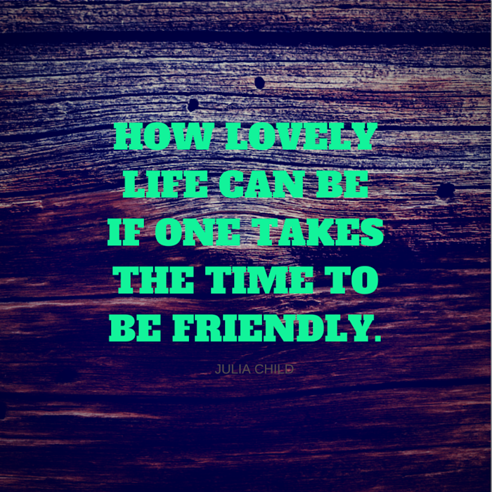 8) “How lovely life can be if one takes the time to be friendly.” -- Julia Child